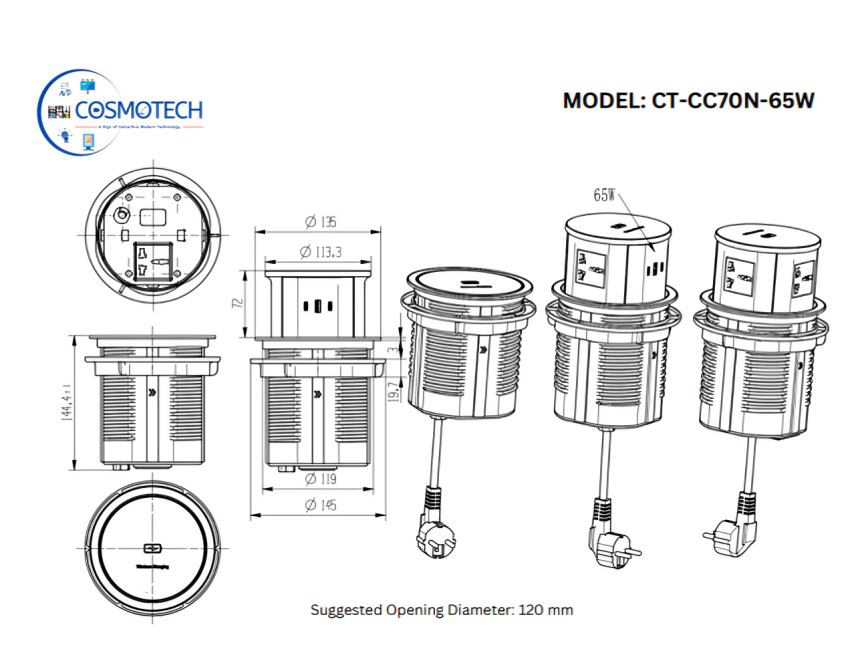 The COSMOTECH CT-CC70N Cable Cubby combines sleek design with powerful connectivity. With 65W USB-C fast charging, multiple ports, and a premium pop-up design, it’s the perfect solution for modern workspaces, conference rooms, and executive desks. Stay powered, connected, and clutter-free.
